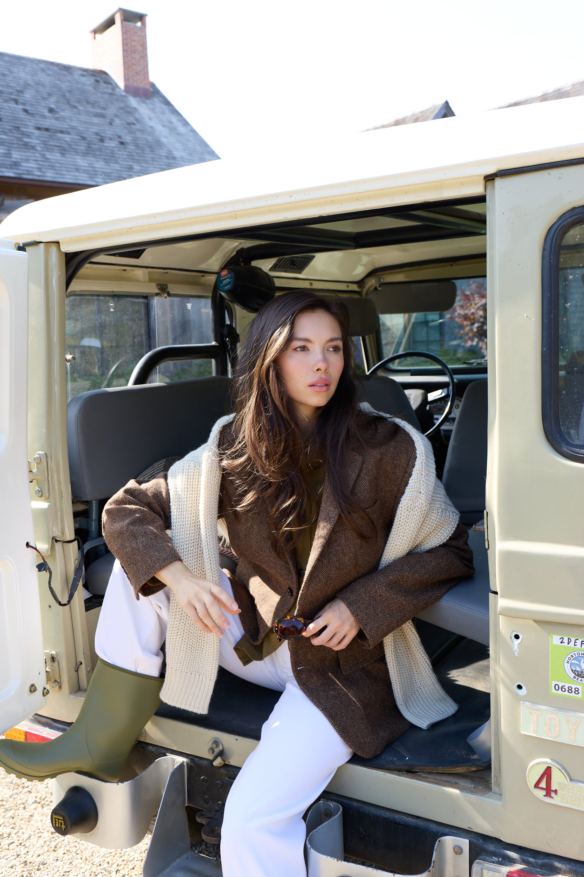 A blazer borrowed from his closet — refined for her. The Harris Blazer is cut from plush wool herringbone inspired by vintage Harris Tweed, bringing warmth, texture, and heritage into a masculine silhouette for the women’s wardrobe. Relaxed, effortless, and ideal for layering — like borrowing the perfect blazer from your boyfriend.